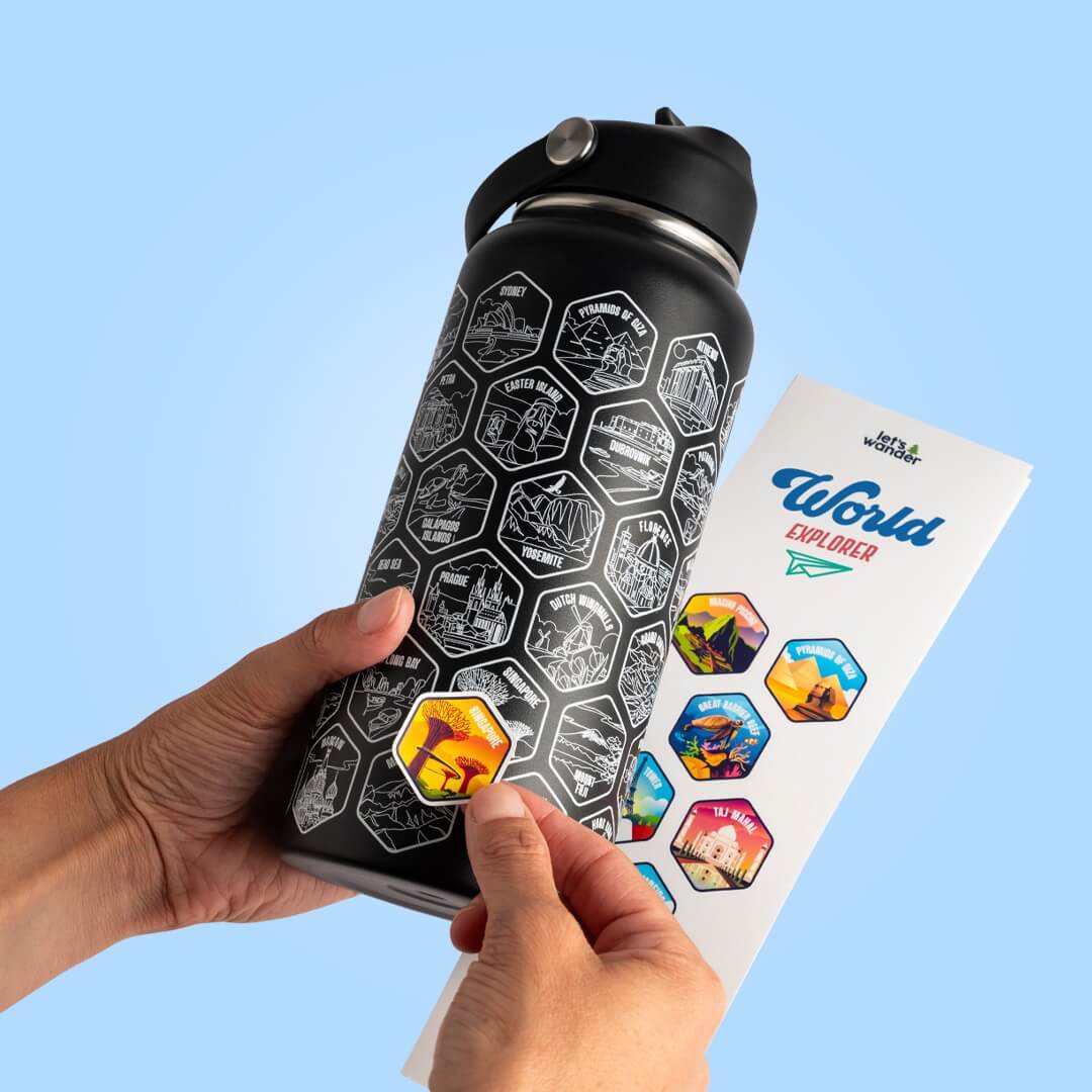 Yes! With every bottle purchase you will receive a sticker sheet which has all 50 World Destinations stickers included!